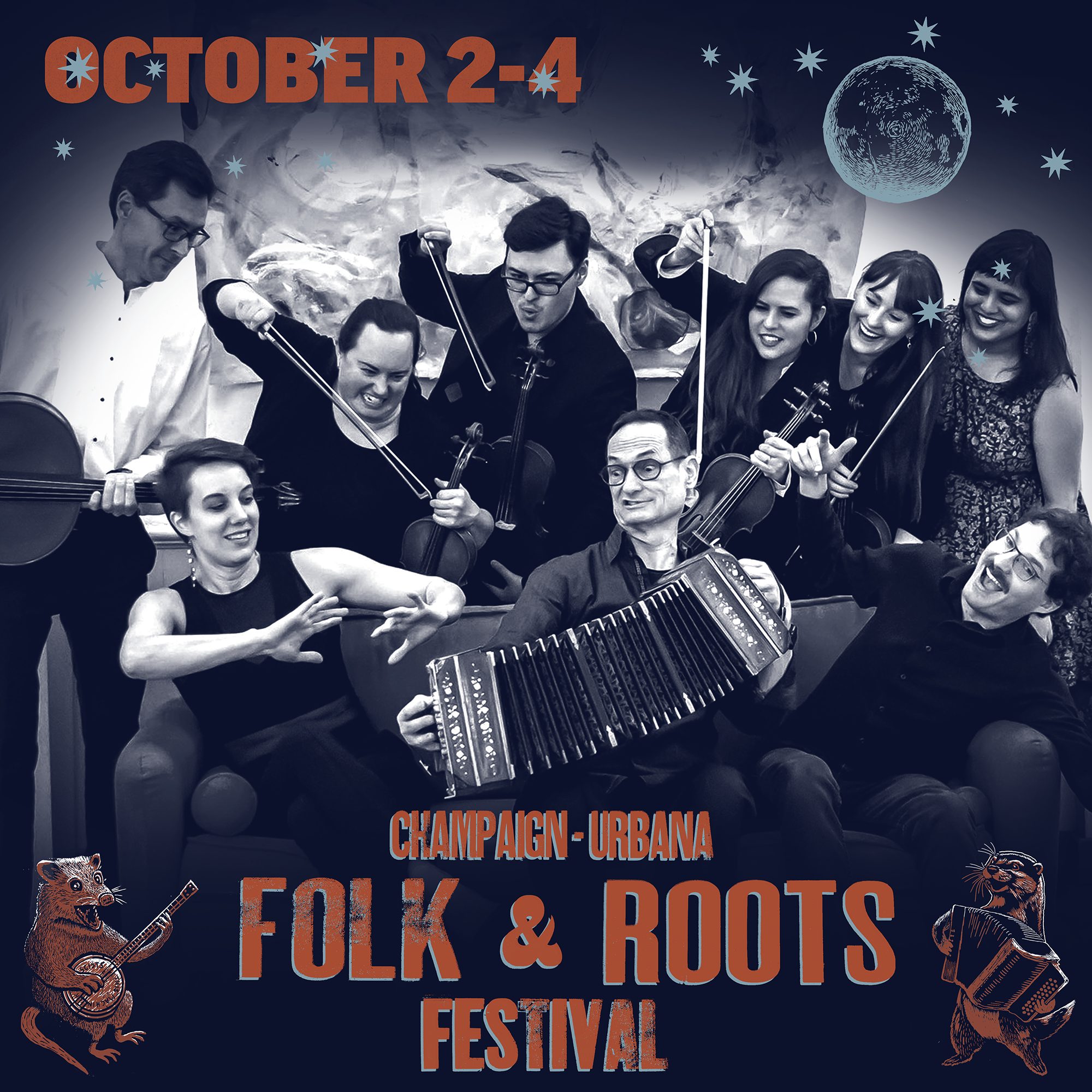 Willi Carlisle, Hogslop String Band, Greg Cahill & Special Consensus, Eddie Barbash & KASA & Friends, Buffalo Rose, Lizzie No, Chris Acker, Melody Angel, Vitalis “Samaita” Botsa, The Sullivan Sisters, Hogslop String Band, Dennis Stroughmatt & Creole Stomp, Wild Earp & The Free For Alls, The Claudettes, Cole Bridges & The Overpass, The Illegal Smiles, Jamika ft. Ther’Up.Y, Broken Brogue, LoveSeat, Jordan Kaye’s Django Wrangle, Robin and the Toad, Papashoy Klezmer Band, Bandoneon Massacre, Two Shoes Urbana Revue, Mariachi Libertad, Backyard BBQ Band, Bowdacious String Band, Bill Poss Children’s Show, Black Eyed Lillies, Foothill Rounders, Union Avenue, Lehra Lehra, The Firesides, Dan Kusaya and Chimurenga Inspirations, and Rodrigo Avalos.